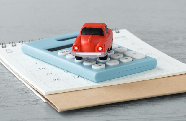 Toy car on caculator and calendar on wooden table / Weiterer Text über ots und www.presseportal.ch/de/nr/100000091 / Die Verwendung dieses Bildes für redaktionelle Zwecke ist unter Beachtung aller mitgeteilten Nutzungsbedingungen zulässig und dann auch honorarfrei. Veröffentlichung ausschließlich mit Bildrechte-Hinweis.