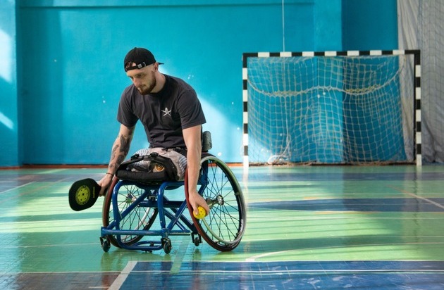 Ukraine – Odessa – 31.03.2025: Training ukrainischer Militärveteranen für die Teilnahme an den Invictus Games. Ein schwer verwundeter Veteran absolviert Übungenim Rahmen der Vorbereitung auf internationale Wettkämpfe © Nataliia Mykhailenko / ukrainianphotodiary.org