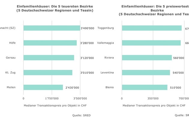 Teuerste und günstigste Bezirke EFH, Quelle: SRED