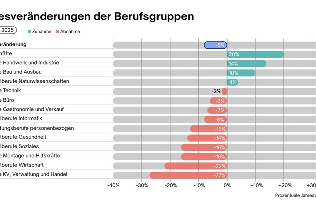 Der Schweizer Stellenmarkt bleibt Ende 2025 insgesamt unter Druck. Die Entwicklung deutet auf einen selektiveren Arbeitsmarkt hin, geprägt von strukturellem Wandel, demografischen Effekten und einer anhaltend verhaltenen konjunkturellen Dynamik.