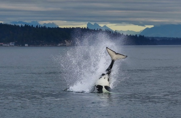 Den deutschen Wildlife Filmpreis erhielt das Werk «Orcas – Herrscher der Meere» mit einzigartigen Aufnahmen des Meeresbiologen und Tierfilmers Florian Graner. Er zeigt die ausgeklügelten Jagdstrategien und das soziale Familienleben der Schwertwale. Foto: zVg Filmfestival NaturVision / Florian Graner