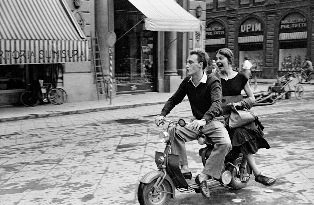 Jinx und Justin auf einem Roller, Florenz, Italien, 1951 // Jinx and Justin on Scooter, Florence, Italy, 1951 © Orkin/Engel Film and Photo Archive; VG Bild-Kunst, Bonn.