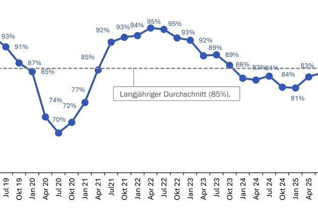 Die Auftragslage bleibt mit 63 Prozent die grösste Sorge der Unternehmen. Wechselkursschwankungen (37 Prozent) und der Fachkräftemangel (26 Prozent) belasten zusätzlich. 17 Prozent der Unternehmen setzen derzeit Kurzarbeit ein – ein Wert, der dem Durchschnitt der vergangenen Quartale entspricht.