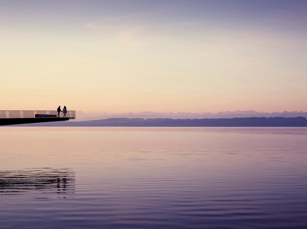 Schweiz Tourismus, ebenso Gewinner des diesjährigen PR-Bild Award, konnte Jury und Publikum mit einer Aufnahme des Neuenburgersees im Kanton Neuenburg überzeugen Das Foto von Sebastien Staub zeigt ein Paar auf der spektakulären "Passerelle de l´Utopie", die weit in den See hineinragt.
