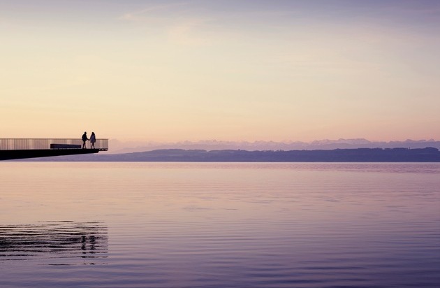 Schweiz Tourismus, ebenso Gewinner des diesjährigen PR-Bild Award, konnte Jury und Publikum mit einer Aufnahme des Neuenburgersees im Kanton Neuenburg überzeugen Das Foto von Sebastien Staub zeigt ein Paar auf der spektakulären "Passerelle de l´Utopie", die weit in den See hineinragt.