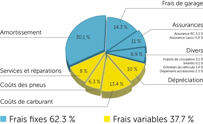 Le calcul des frais kilométriques est aussi utile aux particuliers, qu'il s'agisse de déterminer ses propres coûts d'exploitation ou de les facturer à des tiers. Le procédé est extrêmement simple: les frais d'exploitation enregistrés (fixes et variables) sont divisés par le kilométrage effectué pour donner les coûts par kilomètre. Un véhicule d'un prix moyen de 35 000 francs effectuant un kilométrage annuel de 15 000 km coûte 70 centimes par kilomètre. La légère augmentation des coûts de l'essence, des impôts de circulation et des pneus est en effet compensé par la légère baisse des frais de services et des réparations.