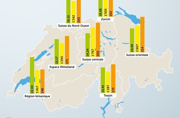 Si l'on examine les régions, on constate que la région lémanique est particulièrement encline aux litiges juridiques. Par rapport à 2019, il y a même eu une légère augmentation, contrairement aux baisses parfois significatives dans les six autres régions. C'est en Suisse centrale qu'il y a eu le moins de litiges.