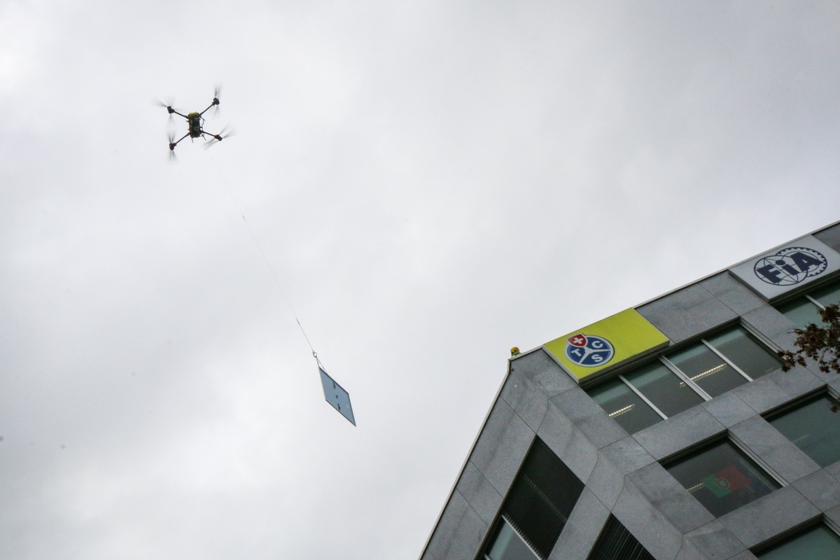 Lunedì, TCS DROPS ha dimostrato un'operazione in ambito urbano trasportando pannelli solari sul tetto della sede del TCS a Vernier, vicino a Ginevra. Essi completano i moduli già installati in precedenza. L'energia prodotta viene utilizzata durante la stagione calda per il raffreddamento degli uffici e, in inverno, per i sistemi di ventilazione e le pompe di riscaldamento.