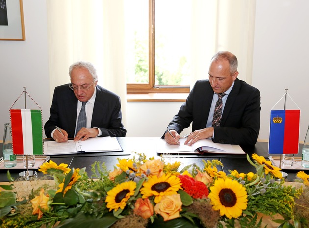 Im Rahmen der Botschafterinformationsveranstaltung am 29. Juni 2015 in Vaduz traf Regierungschef Adrian Hasler den ungarischen Botschafter István Nagy und unterzeichnete mit ihm das im Januar 2015 paraphierte Doppelbesteuerungsabkommen zwischen Liechtenstein und Ungarn.