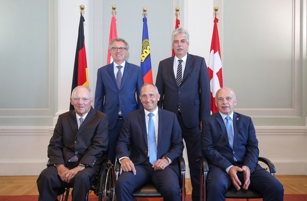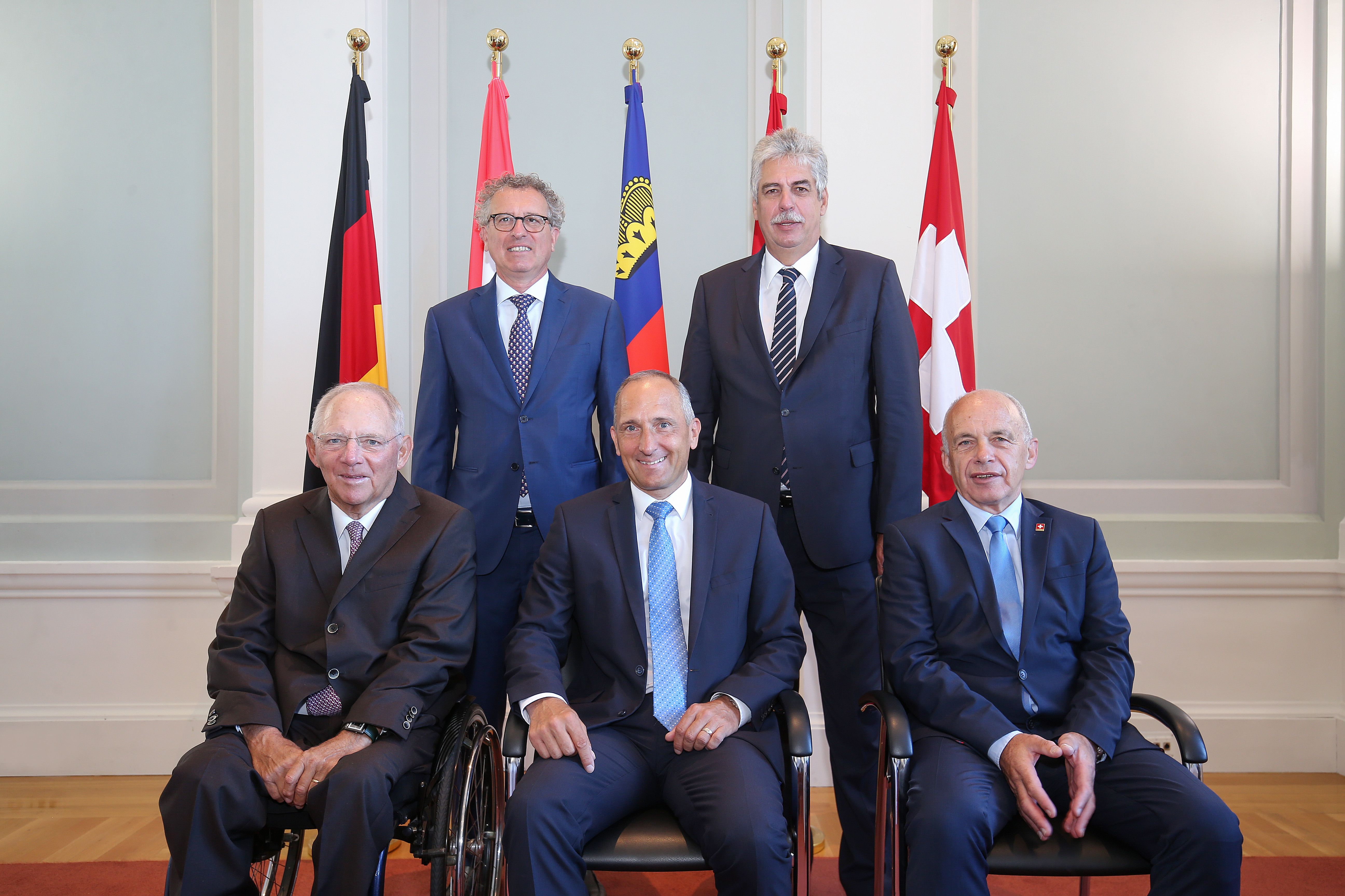 Regierungschef Adrian Hasler hat am Montag, 23. August 2016, die deutschsprachigen Finanzminister Wolfgang Schäuble (Deutschland), Ueli Maurer (Schweiz), Pierre Gramegna (Luxemburg) und Hans Jörg Schelling (Österreich) zu einem Arbeitsgespräch in Vaduz empfangen. Im Rahmen der regelmässig stattfindenden Treffen konnten sich die fünf Finanzminister über aktuelle Herausforderungen und Entwicklungen im Finanz- und Steuerbereich der einzelnen Länder, in Europa und in der internationalen Gemeinschaft austauschen.