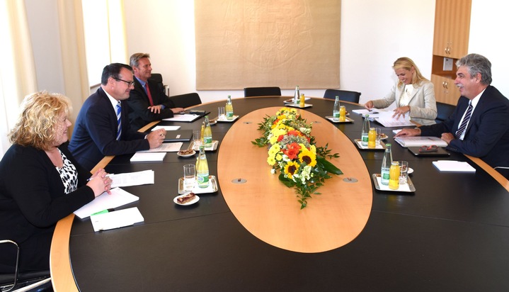 Thomas Zwiefelhofer und Hans Jörg Schelling waren sich über die hohe Bedeutung des gemeinsamen Grenzübergangs Schaanwald-Tisis einig und es wurden verschiedene Entwicklungsszenarien und mögliche Massnahmen zur Sicherung der wirtschaftlich bedeutsamen Zolldienstleistungen diskutiert.