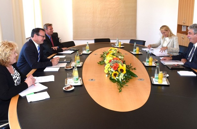 Thomas Zwiefelhofer und Hans Jörg Schelling waren sich über die hohe Bedeutung des gemeinsamen Grenzübergangs Schaanwald-Tisis einig und es wurden verschiedene Entwicklungsszenarien und mögliche Massnahmen zur Sicherung der wirtschaftlich bedeutsamen Zolldienstleistungen diskutiert.