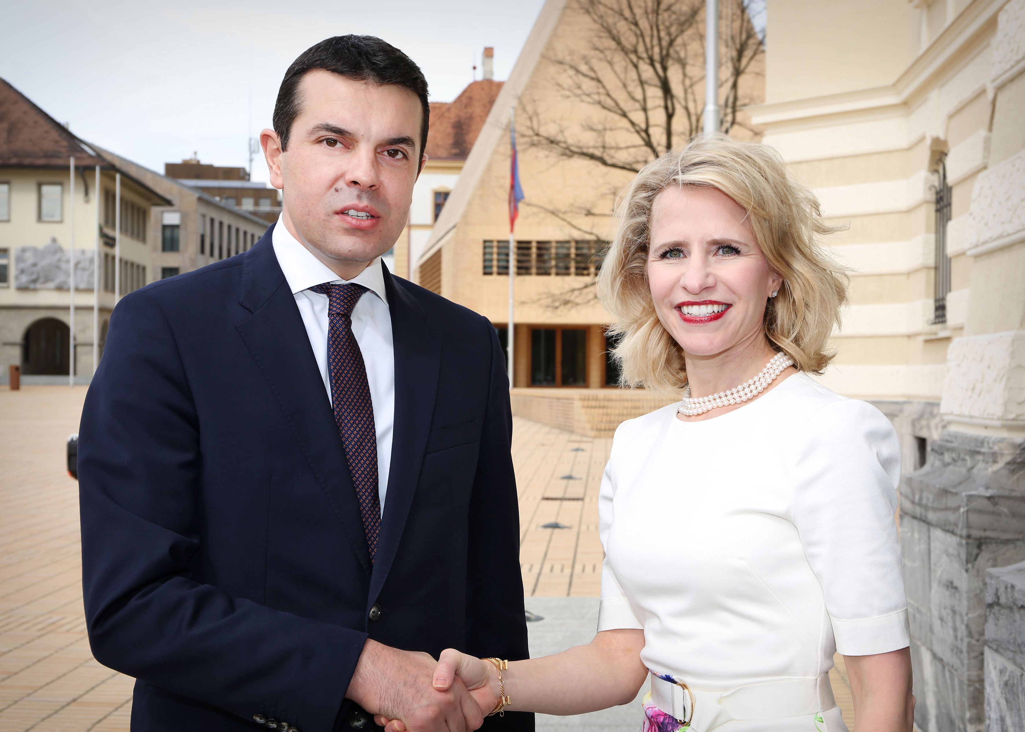 Auf Einladung von Regierungsrätin Aurelia Frick weilte der mazedonische Aussenminister Nikola Poposki am Freitag, 24. März, auf einen Kurzbesuch in Liechtenstein. Die beiden Aussenminister trafen sich zu einem Arbeitsgespräch und besuchten gemeinsam das Fussball-Länderspiel zwischen Liechtenstein und Mazedonien.