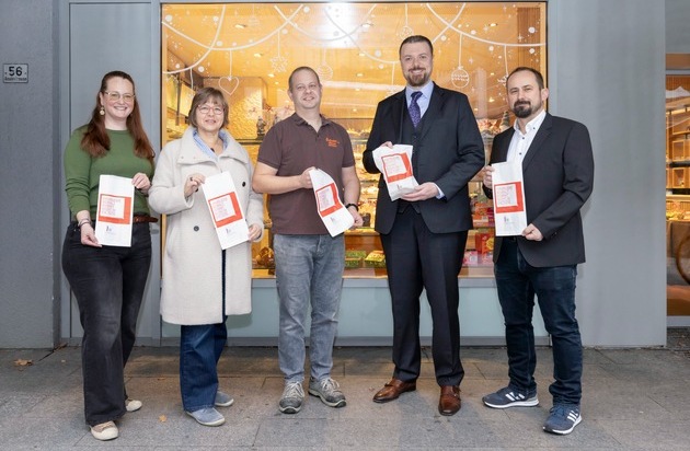 Regierungsrat Emanuel Schädler eröffnete die landesweite Aktion zu den 16 Tagen gegen Gewalt an Frauen in der Bäckerei Konditorei Amann in Vaduz. Auch dieses Jahr beteiligen sich wieder zahlreiche Bäckereien und Lebensmittelgeschäfte in Liechtenstein an der Kampagne.