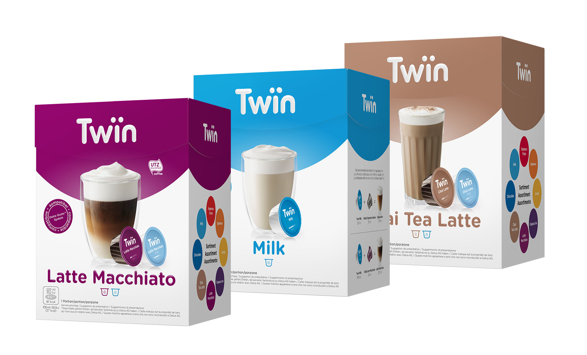 Avec son système à capsules "Twin" pour le café et les boissons lactées, Migros offre aujourd'hui à ses clients des cafés encore plus savoureux. Une machine à café dotée d'un tiroir à capsules à deux compartiments a été spécialement conçue pour le nouvel assortiment de capsules Twin. Elle permet de préparer en toute simplicité des boissons lactées Twin ainsi que les délicieuses variétés de café Delizio. L'assortiment Twin compte huit capsules différentes qui viennent compléter la sélection déjà vaste de cafés Delizio. Les nouvelles capsules sont également compatibles avec toutes les machines Dolce Gusto®* de NESCAFE®*.