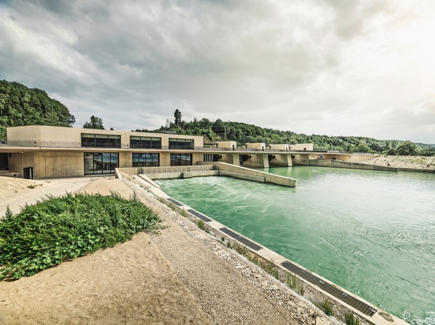 Höchstleistungen bei Bau und Betrieb: Insgesamt wurden 100'000 Kubikmeter Fels und Molasse ausgehoben und 50'000 Kubikmeter Beton verbaut. Die neue Wehranlage besteht aus vier Wehrfeldern von je 15 Metern Breite. Das Kraftwerk erzeugt 110 GWh Strom, eine Menge, die den Jahresbedarf von 30'000 Haushalten deckt.