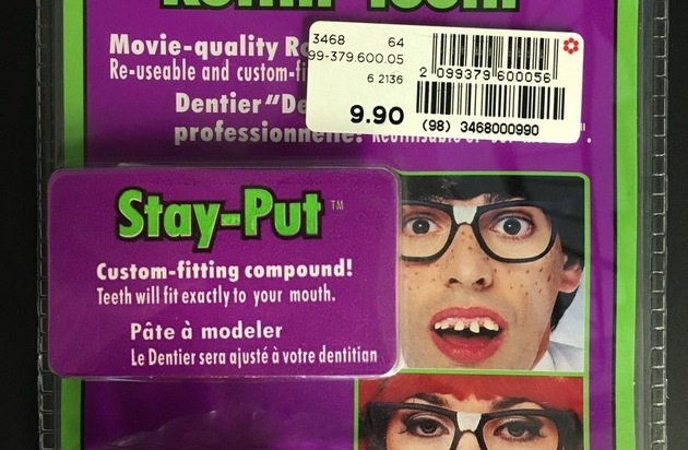 Le mode d'emploi de l'article de carnaval « Dentier Korn Pone 'Rottin' Teeth' », fourni par Rubie's Deutschland GmbH, présentant des informations erronées, Manor rappelle le produit.