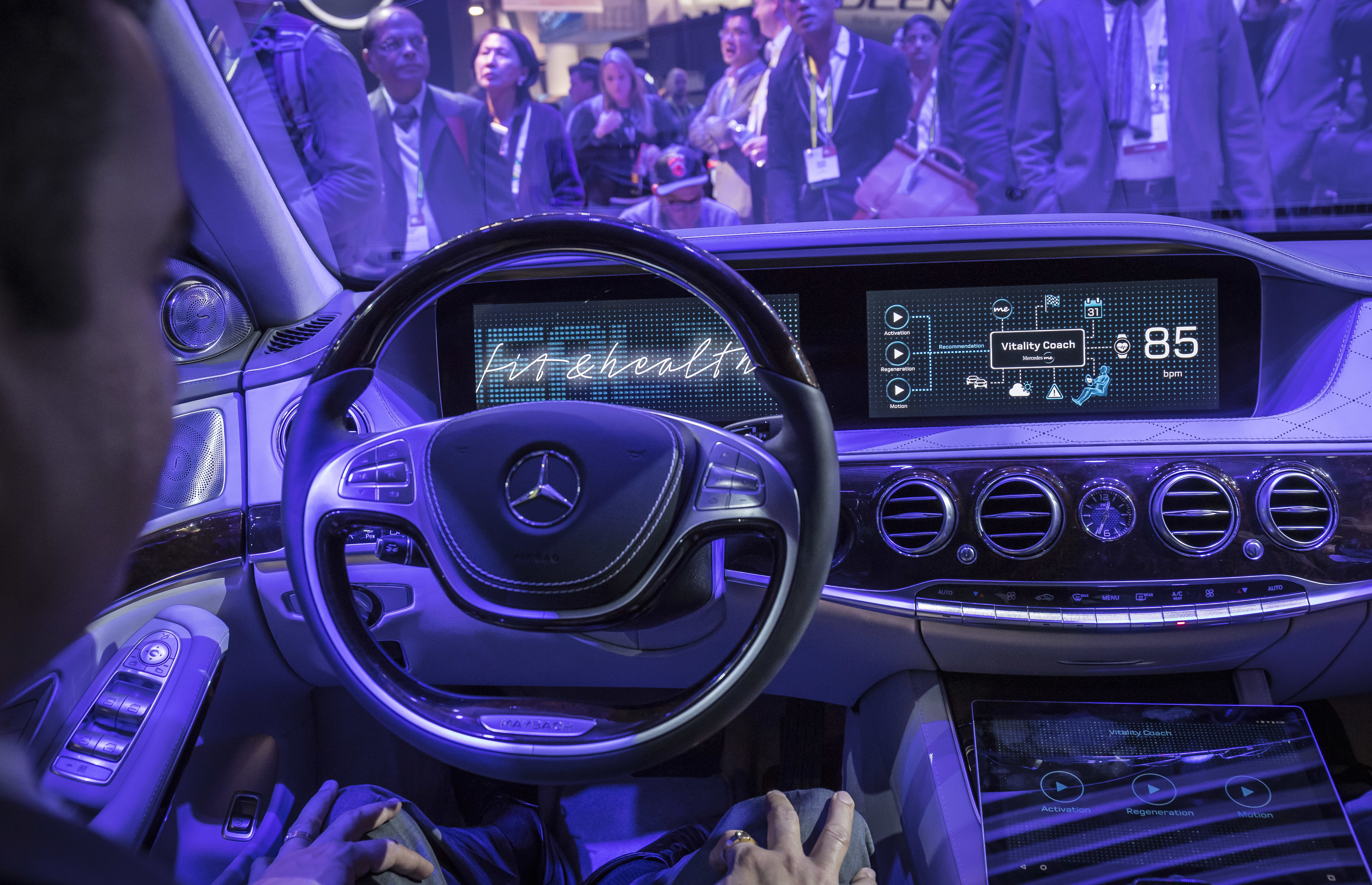 Im Konzeptfahrzeug "Fit & Healthy" auf Basis einer Mercedes-Maybach S Klasse können Besucher der CES den intelligenten Komfort von morgen erleben: Regeneration und Aktivierung heissen zwei der Erlebniswelten, die dort den Passagieren körperliche und geistige Erholung oder Aktivierung ermöglichen.