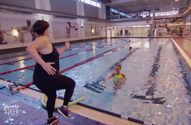 Auch sportlich muss die 26-Jährige kürzertreten, denn an Surfen ist hochschwanger natürlich nicht zu denken. Von ihrer Schwester bekommt Janni einen heißen Tipp: Aquagym. So bleibt Frohnatur Janni ihrem Element zumindest treu und tauscht die Wellen des Ozeans kurzerhand gegen ein gefliestes Schwimmbecken ... und ihr Surfbrett gegen eine Poolnudel. Ob dieses neue Hobby auf Dauer auslastend für die Leistungssportlerin ist?
