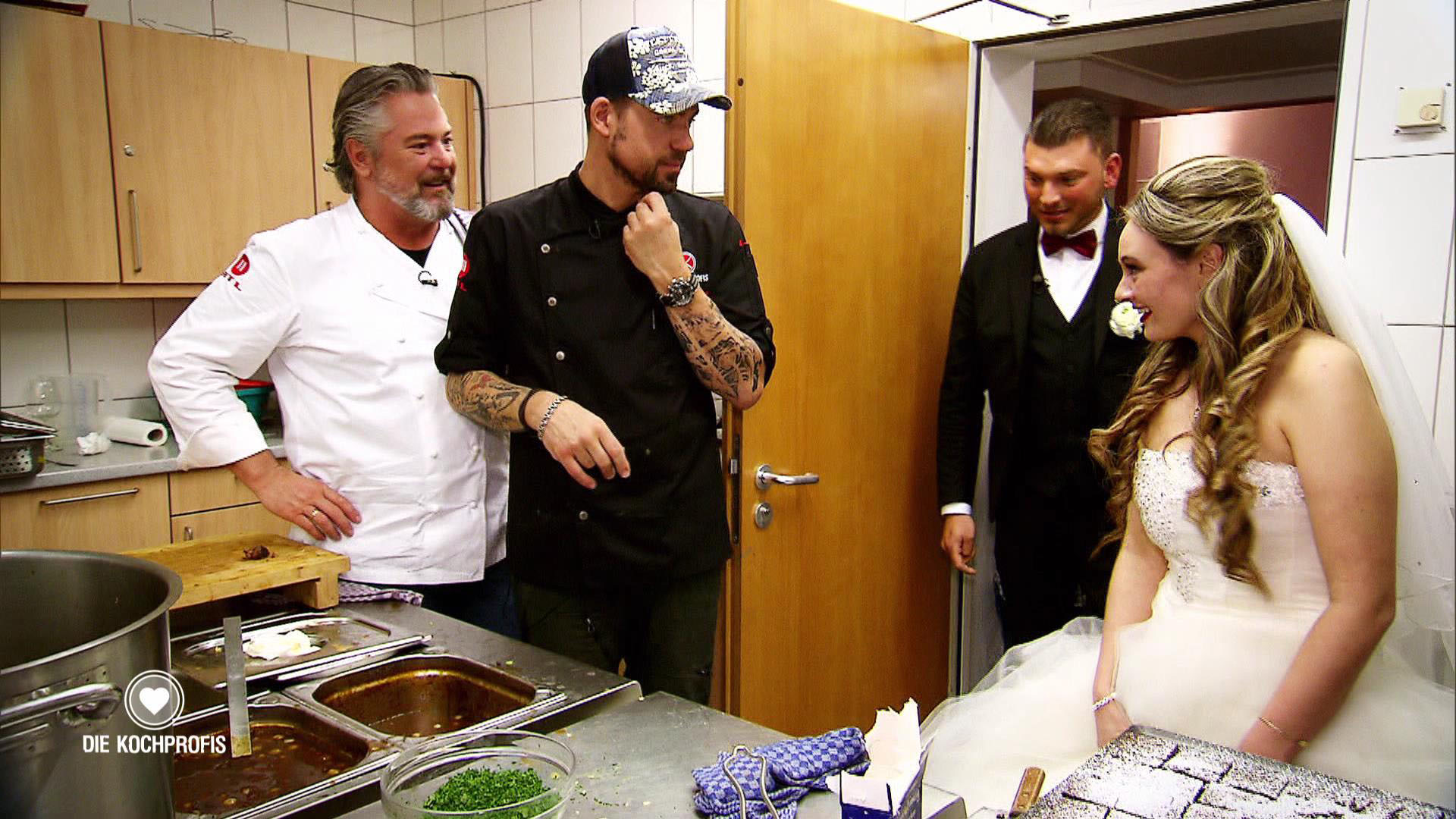 Die Kochprofis sind zum ersten Mal im Einsatz für die Liebe: Zusammen mit Hochzeitsplanerin und Eventmanagerin Nadja Dotzauer, wartet auf die Kochprofis Frank Oehler und Andi Schweiger eine Herausforderung, die mehr als sportlich ist. Für Angelina (23) und TJ (24) sollen sie in nur drei Tagen eine Hochzeit organisieren, die alle vorangegangenen Familienfeiern in den Schatten stellt. Das Problem dabei: Als Eventlocation hat sich das Brautpaar eine Turnhalle ausgesucht.