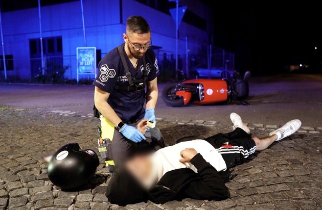 In München kümmert sich Notarzt Dr. Don-Felix Ryzek um einen verunglückten Rollerfahrer. Er ist abrupt zum Stehen gekommen und mit voller Wucht auf der Straße gelandet. Der Mann klagt über starke Schmerzen am Arm und an der Schulter.