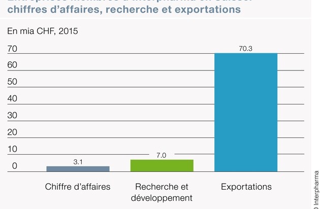En 2015, les entreprises membres d'Interpharma ont investi dans le monde entier plus de 90 milliards de francs dans l'activité recherche et développement (R&D), dont environ 7 milliards en Suisse, soit environ le double du chiffre d'affaires réalisé dans le pays. Cette information et bien d'autres sont contenues dans la 23e édition de l'ouvrage statistique de référence «Le marché du médicament en Suisse».