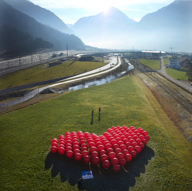 « Le nouveau tunnel de base du Gothard représente une chance historique pour la Suisse de mener à bien le transfert du transport de marchandises de la route au rail », affirme Jon Pult, président de l'Initiative des Alpes. Près du portail à Ersfeld UR, l'association a salué le nouveau tunnel ferroviaire avec un coeur fait de 130 ballons biodégradables. « C'est à la politique à présent d'assumer ses responsabilités. Dix mesures peuvent permettre d'atteindre l'objectif de transfert annuel de 650 000 camions au maximum transitant par les Alpes », ajoute Jon Pult.