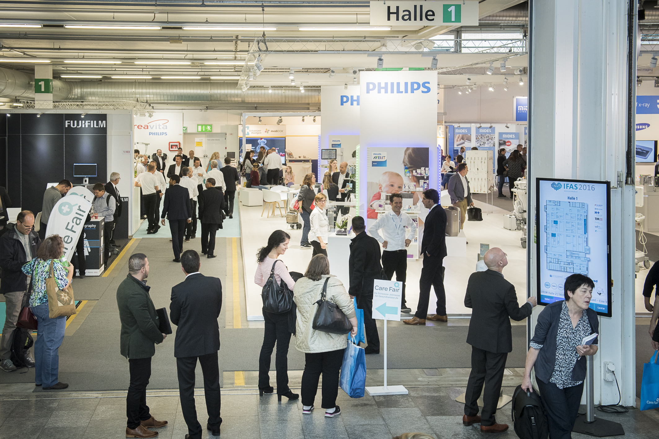 L'IFAS, le salon spécialisé du marché de la santé, reste un point de rencontre extrêmement prisé des acteurs du secteur de la santé. C'est ce qu'a à nouveau prouvé la 34e édition de l'IFAS, qui s'est tenue du 25 au 28 octobre 2016 au parc d'expositions de Messe Zürich. S'agissant du nombre d'exposants et de stands, le salon a pu renouer avec les excellents chiffres de 2014. Quant aux visiteurs, ils sont 16'308 à s'être déplacés pour découvrir les tendances et les nouveautés du secteur. CareFair, le premier salon de l'emploi suisse pour professions de santé, a lui aussi été très bien accueilli.