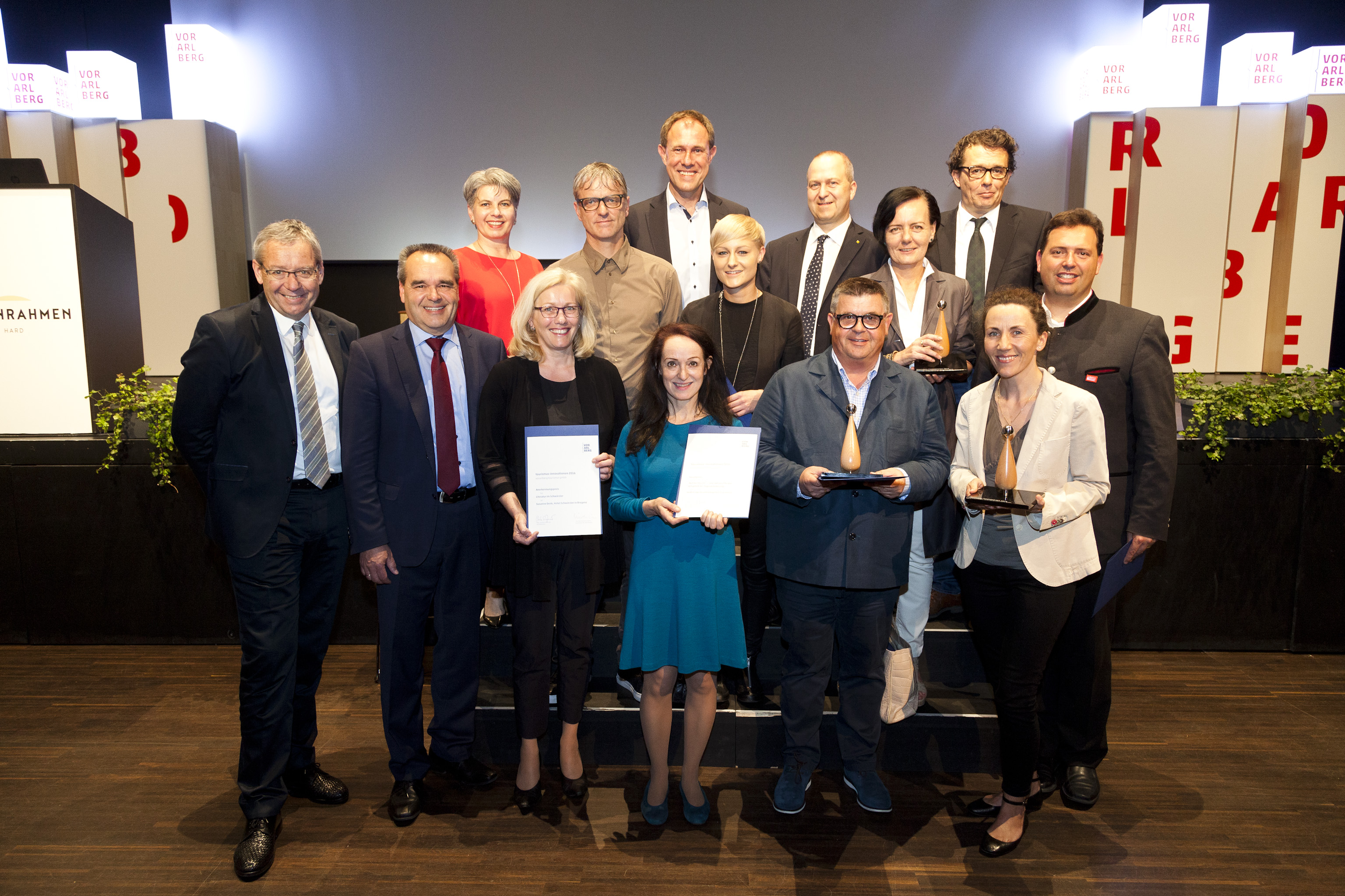 Hauptpreise: Innovationsaward und 2.000 Euro · Schualhus; Joschi Walch, Hotel Rote Wand, Zug · Umgang Bregenzerwald - 12 Wege zur Gestaltung; Bregenzerwald Tourimus GmbH · Auf der Flucht - interaktives Theater im Hochgebirge; Verein teatro caprile Vorarlberg - Wien in Zusammenarbeit mit Gargellen Tourismus Anerkennungspreise: Urkunde und 1.000 Euro · Literatur im Schwärzler; Susanne Denk, Hotel Schwärzler · Krone trifft Kunst; Familie Lingg, Krone in Au · Helden reisen, Gäste speisen; Wolfgang Preuß, Wirtschaft Dornbirn mit Partnerbetrieben Jury · Klaus Lingg, Geschäftsführer Kulturhaus Dornbirn · Dietlind Castor, Journalistin · Beate Fritsch, Junges Gastgewerbe · Astrid Keckeis, Abteilung für Wirtschaftsangelegenheiten des Landes Vorarlberg · Willi Sieber, Ökologie Institut Vorarlberg · Brigitte Plemel, Vorarlberg Tourismus Veranstalter des Vorarlberger Tourismusforums 2016 Vorarlberg Tourismus in Partnerschaft mit: · Land Vorarlberg · Raiffeisen Vorarlberg · Sparte Tourismus & Freizeitwirtschaft der Wirtschaftskammer Vorarlberg Diese Pressemitteilung und druckfähige Bilder finden Sie auf [www.vorarlberg.travel/gmbh/de/pressemitteilung] (http://www.vorarlberg.travel/gmbh/de/pressemitteilung)
