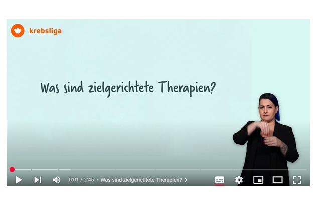 Informationen über Krebs sollten für alle zugänglich sein. Deshalb bietet die Krebsliga ihre Erklärvideos neu in Gebärdensprache an. Das neuste Video in dieser Reihe enthält Infos in einfacher Sprache und Gebärdensprache zu zielgerichteten Therapien.