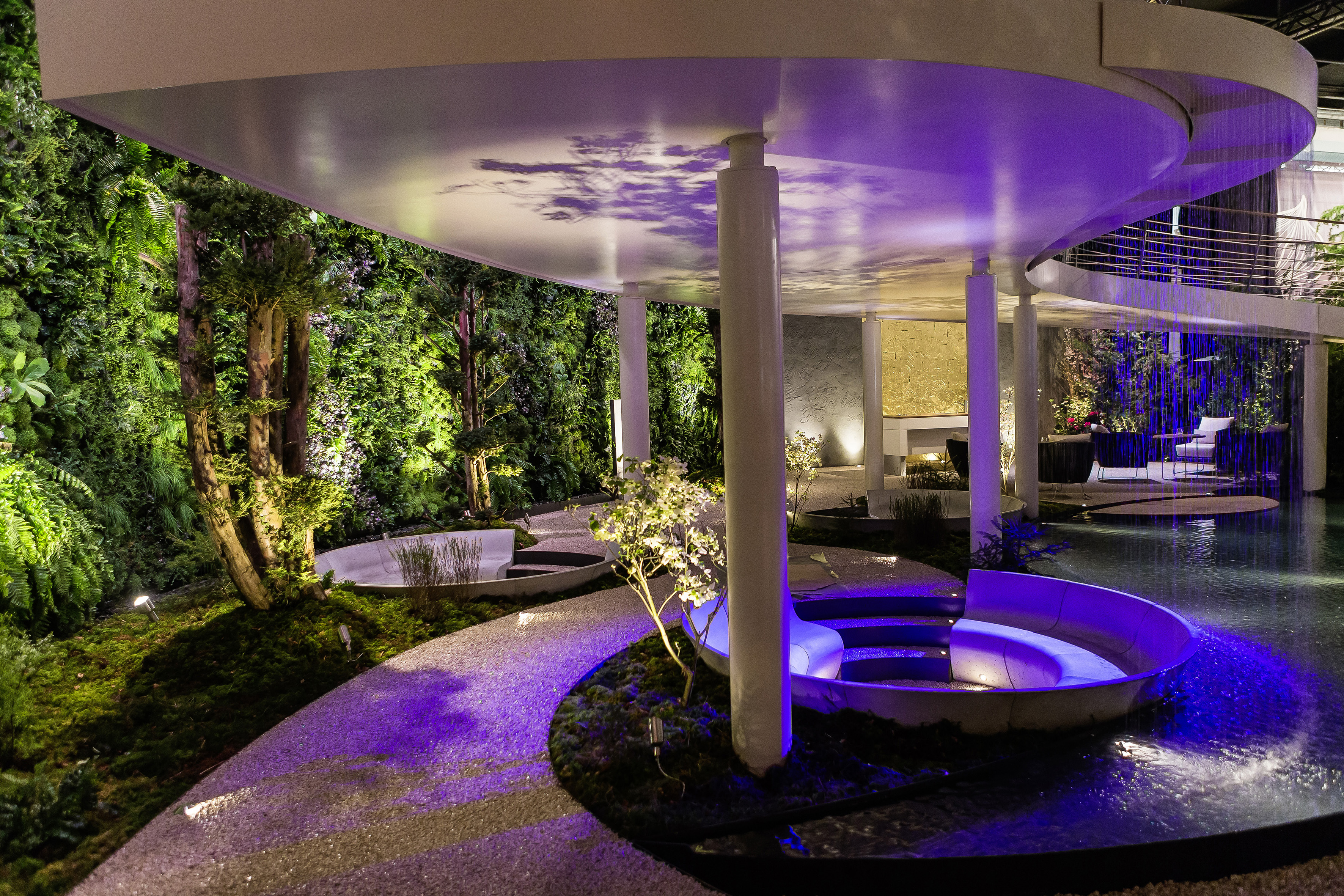 Moderne Gartenromantik interpretieren Gartengestalter vielseitig: Die nautisch angehauchte Gartenwelt "Nauterra" weckt mit der wohl grössten Indoor-Pflanzenwand Europas und einem einzigartig designten Stahlpavillon die romantische Sehnsucht nach Unendlichkeit. Der "Rock Garden" aus 130 Tonnen Felsgestein entführt die Besucher in eine Berglandschaft mit einer futuristischen Chalet-Konstruktion. Eine eigens für die Giardina angefertigte Outdoorküche aus massivem Stein fügt sich harmonisch in die Landschaft ein. Die ganze Anlage ist durchwegs von runden Formen geprägt, was eine natürlich ausgewogene Atmosphäre erzeugt. Wie aus Alltäglichem Einzigartiges entsteht, zeigt der Schaugarten "Zu allen Himmelsrichtungen" mit Bepflanzungsbeispielen für klimatisch unterschiedliche Standorte.