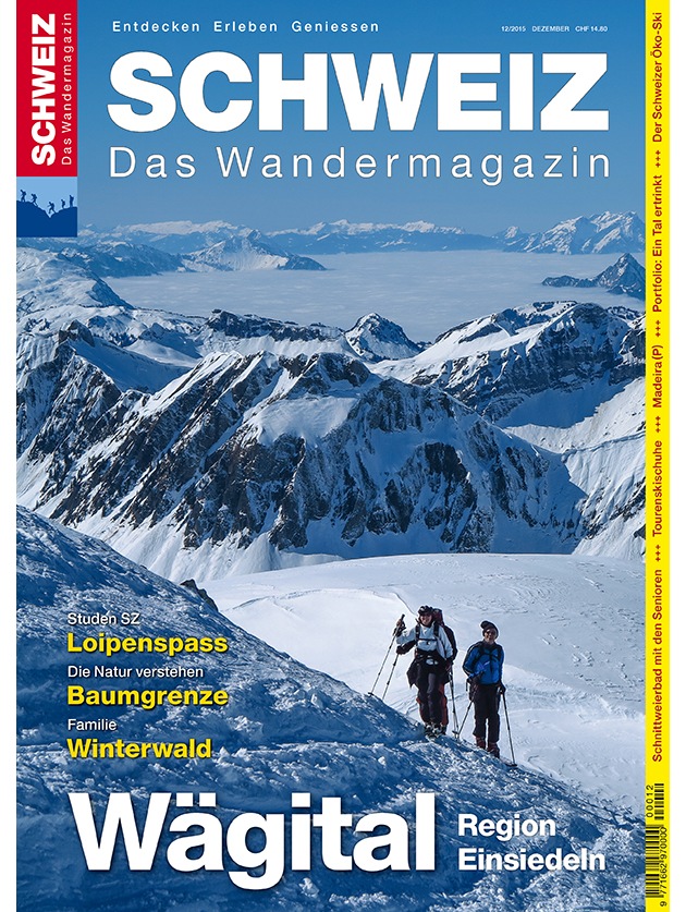 - Innerthal: Bockmattli, Zindlenspitz, Fluebrig & Co. - Oberiberg: Durch Auerhuhnland - Loipenspass: Langlaufen in Studen SZ - Familientipp: Winterwald - Portfolio: Bilder aus der Wägitaler Vor-Stausee-Zeit - Naturtipp: Wald- und Baumgrenze im Glarnerland - Seniorentour: Schnittweierbad bei Steffisburg BE - Grenzen überschreiten: Madeira