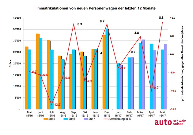 auto-schweiz: Starker Auto-Mai zieht Gesamtjahr ins Plus