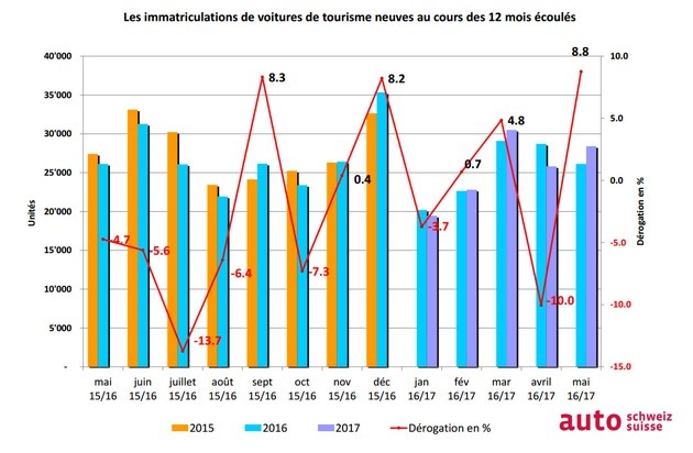 auto-suisse: Le mai automobile solide se traduit par une hausse sur l'ensemble de l'année