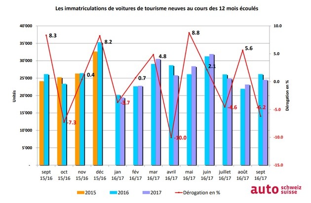 En raison du léger recul en septembre, le marché global a connu une baisse minimale. Avec 231 483 immatriculations au cours des trois premiers trimestres de l'année courante, on est resté en deçà de 300 unités ou de 0,3 % seulement du résultat d'il y a une année. Cela pourrait toutefois changer en octobre déjà, vu que pendant les derniers mois les hausses et les baisses des chiffres annuels cumulés ne cessaient de s'alterner.