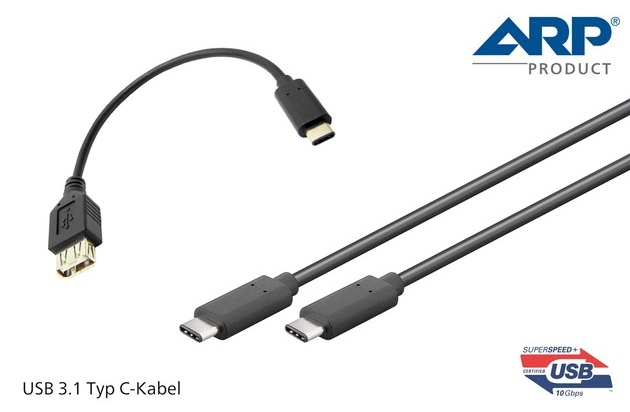 Die Anzahl Geräte, die den neuen USB 3.1 Typ C-Anschluss verwenden, ist bisher noch überschaubar. Trotzdem hat sich ARP dazu entschlossen, die Sortimentserweiterung bereits jetzt vorzunehmen und den neuen Standard von Anfang an zu begleiten.
