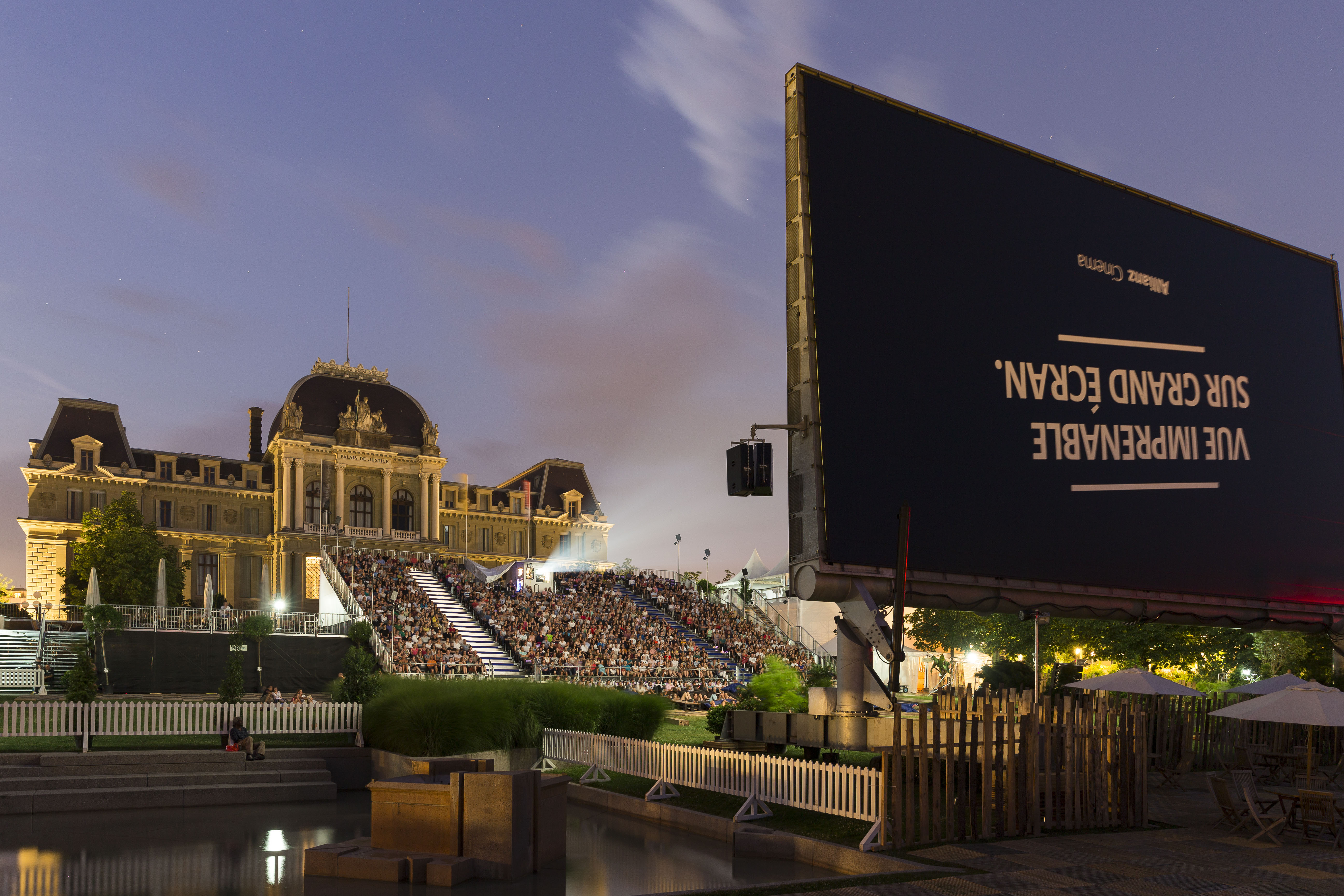 30°, 1'000 spectateurs, le lac Léman et les Alpes en toile de fond : la première édition du Allianz Cinema Lausanne s'est ouverte hier soir sous les meilleurs auspices. A 21h45, après quelques mots de bienvenue du syndic de Lausanne Grégoire Jornod, l'écran géant de 300m2 installé sur l'esplanade de Montbenon s'est levé pour l'avant-première du film The Circle qui se jouait à guichet fermé. Place maintenant à un mois entier de cinéma sous les étoiles sur ce site exceptionnel au coeur de Lausanne.