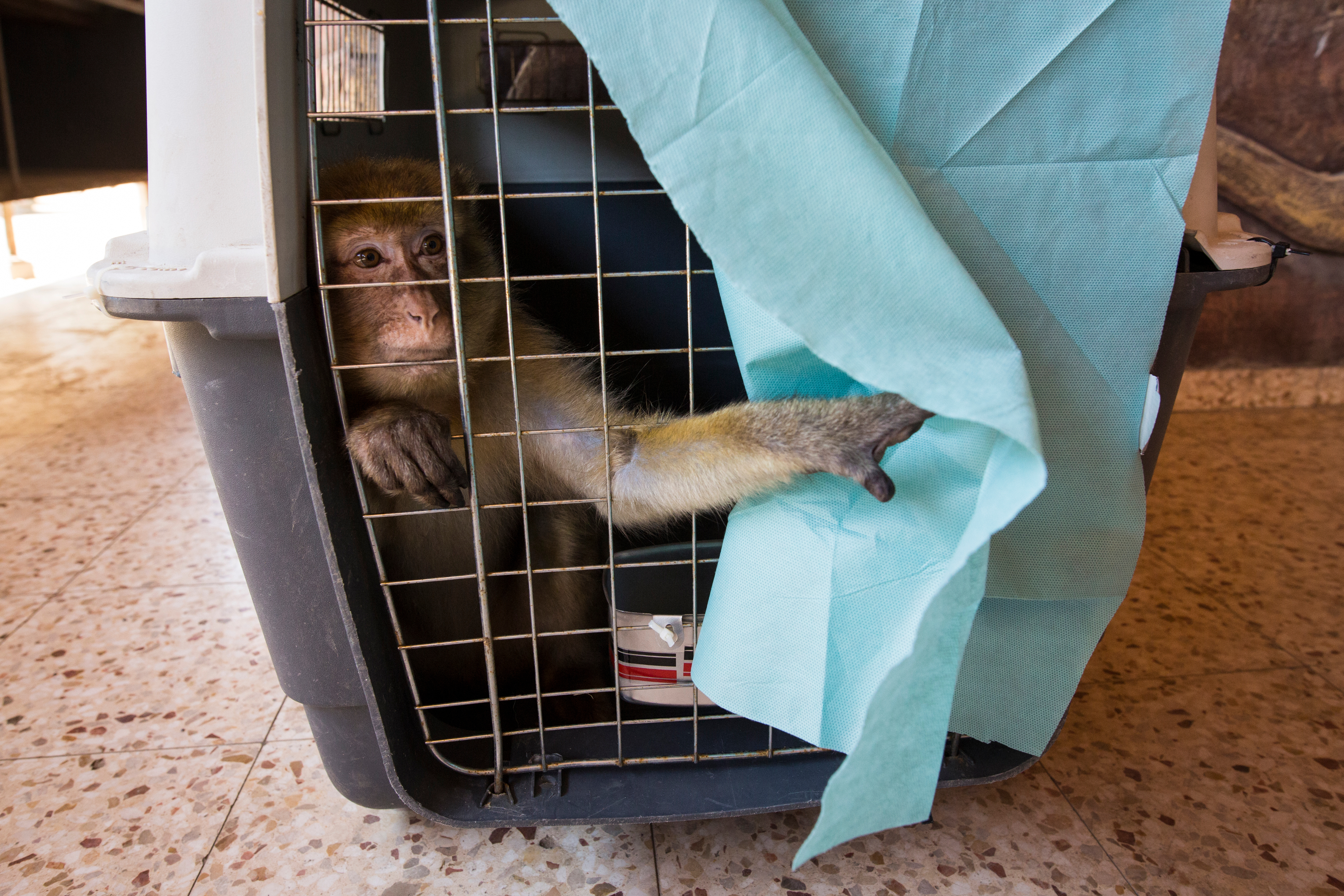 Die Verladung des Emus hingegen stellte eine der grössten Herausforderungen dar: Gleich drei Teammitglieder mussten das schnelle und wendige Tier gemeinsam einfangen, um ihn in seine Transportbox zu bekommen. Die Affen, die unter den ersten verladenen Tieren waren, beobachteten das ganze Geschehen neugierig. "Die Käfige waren mit Tüchern abgedeckt, aber sie griffen durch die Stäbe, schoben die Tücher beiseite und schauten uns die ganze Zeit zu, wie wir uns bei extremer Hitze abmühten. Währenddessen waren im Hintergrund immer wieder Detonationen zu hören, die uns daran erinnerten, an was für einem speziellen Ort diese Mission stattfand", berichtet Indra Kley, Mitglied des VIER PFOTEN Rettungsteams.