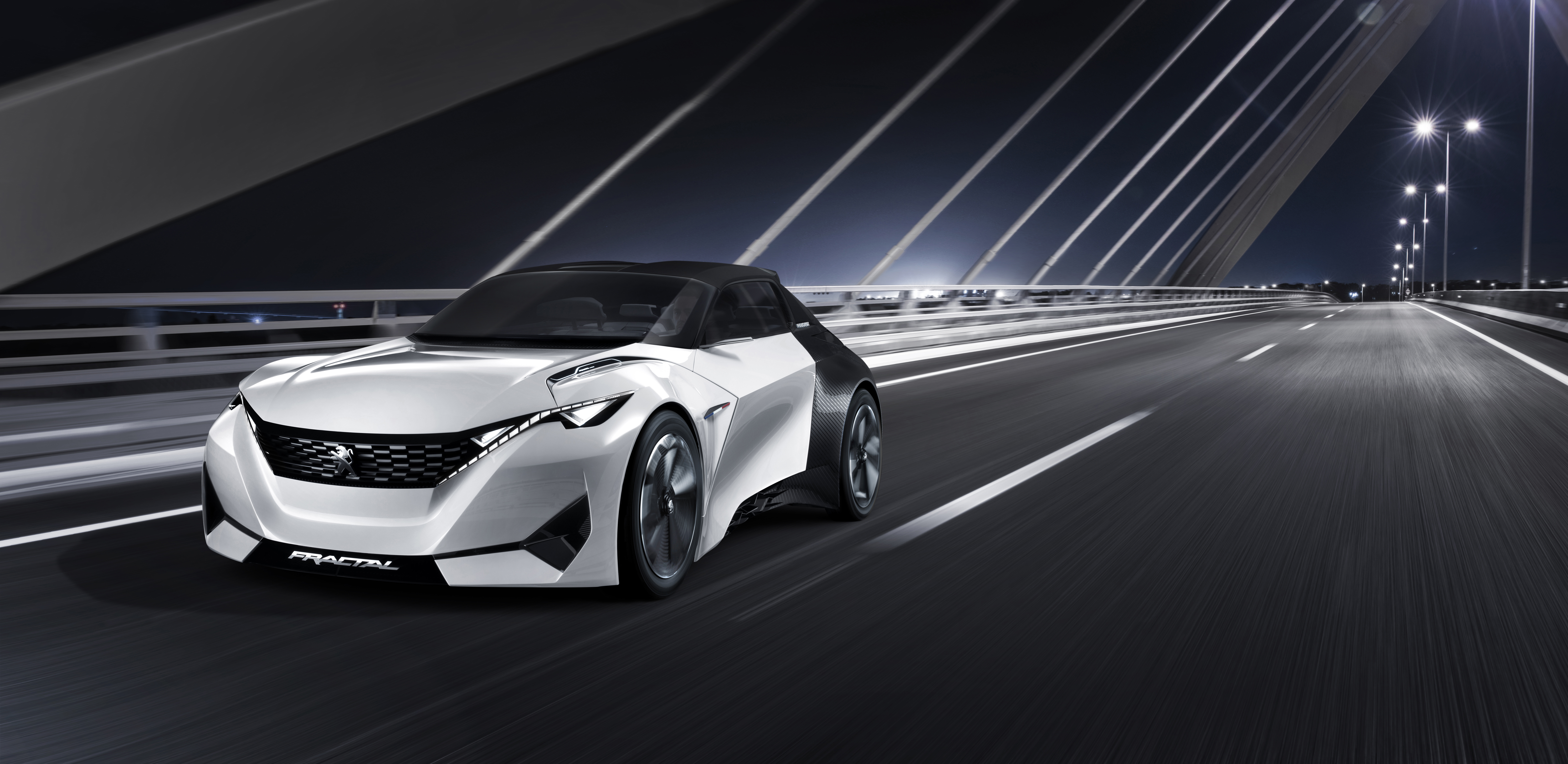 Le système acoustique 9.1.2 rend la conduite plus instinctive en véhiculant une information enrichie par le son. Cette composante additionnelle du PEUGEOT i-Cockpit® est caractérisée par la spatialisation et la dynamisation du son. PEUGEOT FRACTAL dispose d'une identité sonore extérieure et intérieure développée pour la première fois en collaboration avec un designer sonore, Amon Tobin. En ville, le véhicule évolue ainsi en harmonie avec son environnement. Le combiné tête haute de PEUGEOT FRACTAL conjugue une dalle numérique à affichage holographique haute définition à une lame polycarbonate inclinée à 45°. Le conducteur peut gérer l'affichage comme il le souhaite. La lame polycarbonate inclinée délivre des informations complémentaires avec un effet de profondeur. Laboratoire d'idées, PEUGEOT FRACTAL explore de nouveaux procédés de fabrication et de conception. Les pièces issues d'impression 3D représentent plus de 80% de la surface de l'habitacle. Les surfaces anéchoïques sont conçues par design génératif, un processus permettant d'aboutir à la pièce idéale.