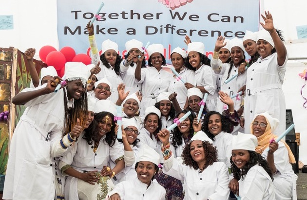Sie waren Armutsprostituierte, Wäscherinnen oder Hausmädchen bei Reichen in Arabien. Ihr Schmuck ist aus Blech, aber ihr Stolz ist echt: 132 arme Äthiopierinnen feierten in Addis Abeba den erfolgreichen Abschluss ihrer Ausbildung als Köchinnen und Hauswirtschafterinnen. «Euer neu gewonnenes Selbstbewusstsein bringt Äthiopien voran!» sagte Josefine Kamm, Geschäftsführerin von Menschen für Menschen.