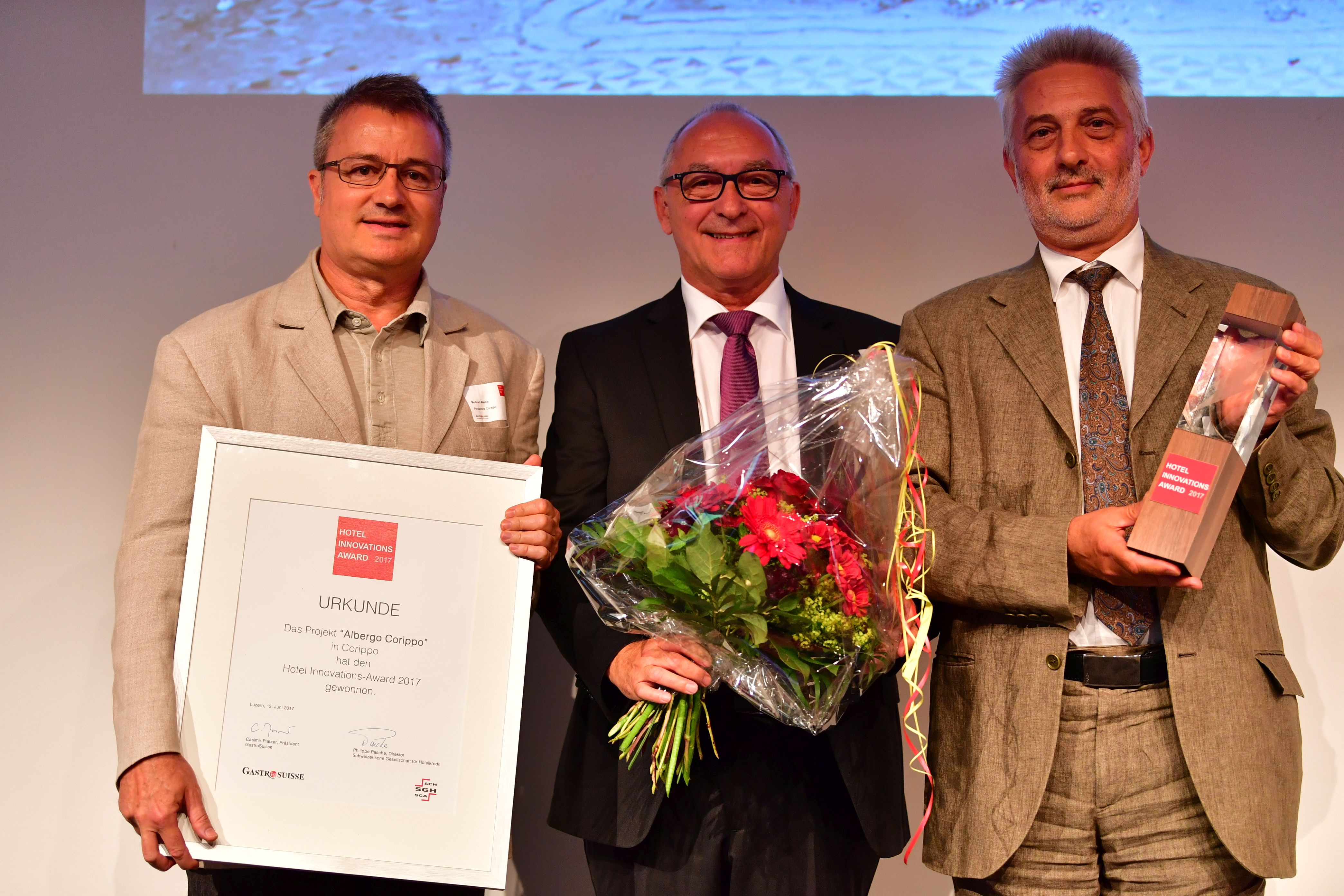 La giuria dell'Hotel Innovation Award ha scelto l'Albergo Corippo tra oltre venti progetti presentati. Erano stati nominati anche il BerglandHof Hotel BnB e il Ristorante ErnerGarten di Ernen, l'Hotel Nest- und Bietschhorn di Ried/Blatten e lo Yoga-Hotel Villa Maria di Vulpera-Tarasp. Ad accomunare i concetti presentati è il fatto che essi puntano su fattori di successo come la sostenibilità, la vicinanza alla natura e il radicamento nella regione.