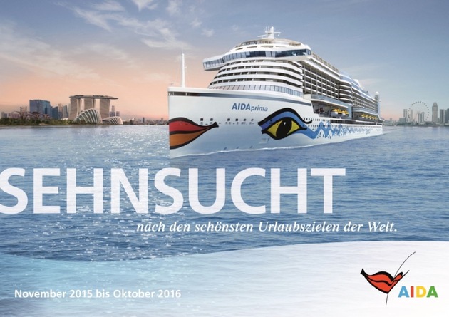 Am 20. März 2015 erscheint der neue AIDA Katalog mit dem Titel "Sehnsucht nach den schönsten Urlaubszielen der Welt" mit über 130 Routen, darunter ganz neue Ziele und wunderschöne Routenkombinationen. Jede Reise wird auf einer Seite übersichtlich mit Terminen, An- und Ablegezeiten, Preisen und besonderen Highlights zur Route präsentiert.