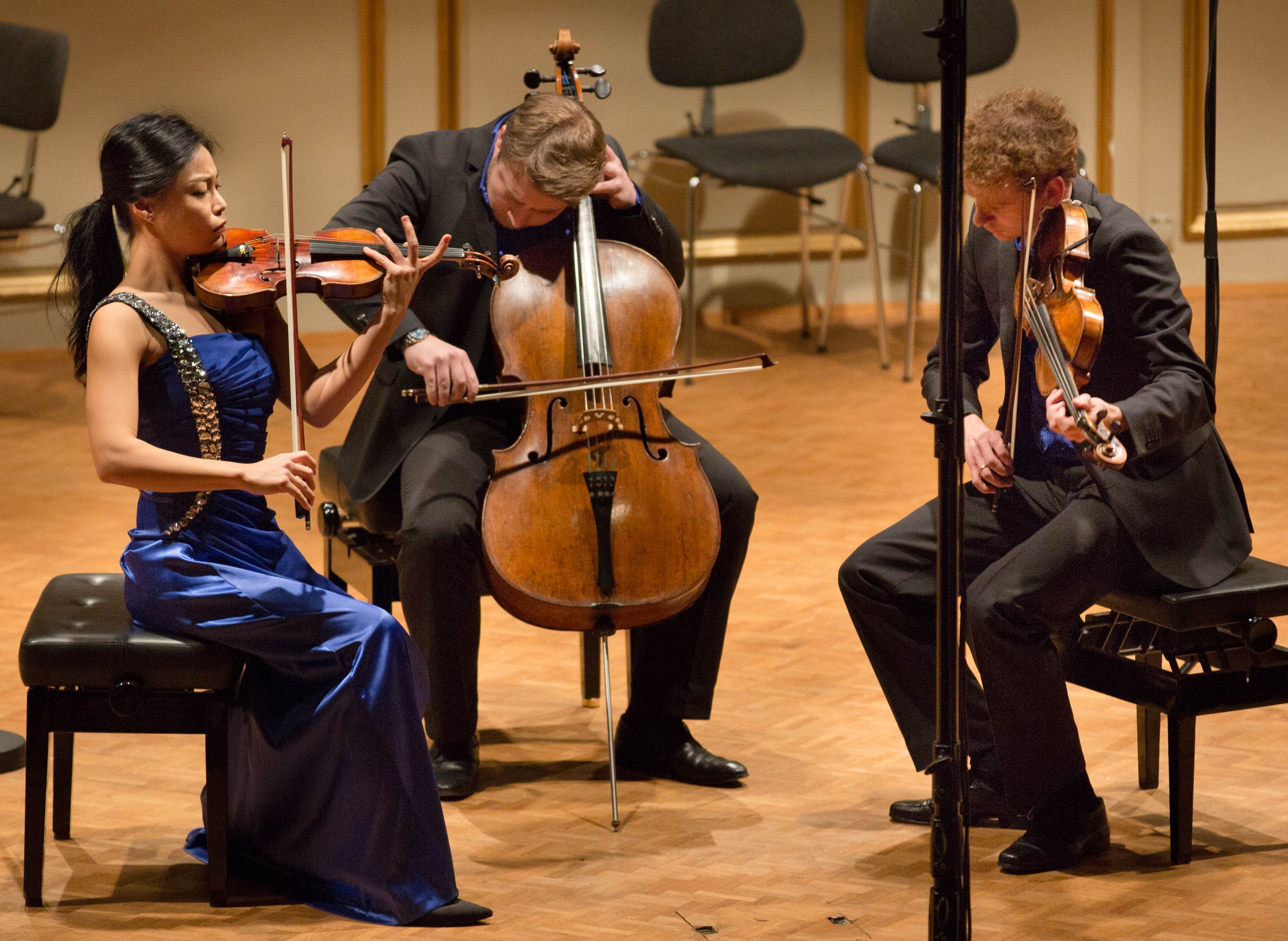 Das Orion Streichtrio, bestehend aus Veit Hertenstein, Viola - Migros-Kulturprozent Studienpreisträger 2007 und 2008 -, Benjamin Gregor-Smith, Violoncello, und Soyoung Yoon, Violine, vermochte mit seiner Darbietung von Beethovens Streichtrio c-Moll op. 9/3 die Jury und das Publikum gleichermassen zu begeistern.