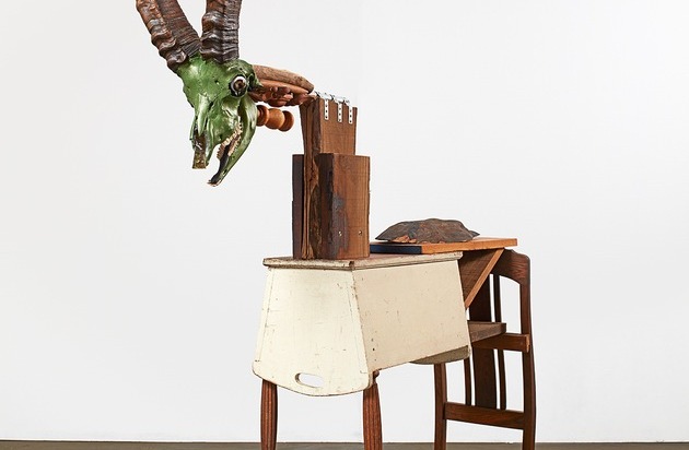 La carrière d'artiste, de poète, d'auteur et d'ex-militant politique de Jimmie Durham (*1940) a commencé aux États-Unis. Parallèlement à son engagement en faveur des droits des peuples autochtones, il y a développé une pratique sculpturale et performative traitant entre autres de questions éthiques et de narrations marquées par le nationalisme. Durham a acquis une notoriété internationale au cours des années 1980, notamment par ses sculptures et installations qui déconstruisent des mythes de l'État. Installé depuis 1994 en Europe, Durham se confronte à son environnement géopolitique et culturo-historique. Il a réalisé pour le Migros Museum für Gegenwartskunst le projet God's Children, God's Poems (2017) qui aborde la relation entre l'homme et la nature. L'artiste a rassemblé pour cela dans la salle d'exposition quatorze sculptures constituées de crânes des plus grandes espèces animales d'Europe associés à des matériaux comme le métal, le bois et le tissu. Reflétant la conception parfois triviale qu'a son public de la nature et de la société, ces assemblages sculpturaux de crânes animaux renvoient à un possible dépassement des oppositions classiques et particulièrement européennes, nature/culture et sujet/objet.