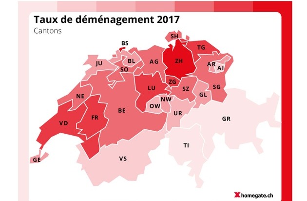 Pour la quatrième fois depuis 2010, 2011 et 2014, l'évaluation à laquelle a procédé la Banque cantonale de Zurich sur mandat de homegate.ch et qui porte sur les taux de déménagement dans tous les cantons montre qu'à l'échelle suisse, le taux de déménagement est resté relativement stable et n'a diminué que légèrement. L'effet négatif de la baisse de l'immigration a été largement compensé par les déménagements accrus à l'intérieur du territoire Suisse. Une comparaison entre les cantons au cours des années montre des légères variations, du moins au milieu du classement. Ainsi, dans l'année en cours, le canton de Vaud se classe quatrième par rapport à la septième place qu'il occupait en 2011 et 2014, par contre, le taux de déménagement à Saint-Gall a diminué. Pour la première fois depuis 2011, ce canton de Suisse orientale affiche une liquidité inférieure à la moyenne.