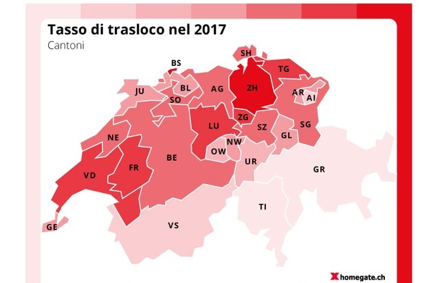 Tra il mese di agosto del 2016 e il mese di luglio del 2017, 400'000 economie domestiche hanno traslocato all'interno della Svizzera. Lo ha dimostrato un'analisi degli ordini di rispedizione inoltrati presso la Posta Svizzera. Sono aumentati quasi del 6% rispetto all'ultimo rapporto sui traslochi del 2014. Nel contempo gli arrivi dall'estero sono in chiara diminuzione. Per quanto riguarda la liquidità nel mercato delle abitazioni la diminuzione è stata solo minima. Con 10,5% il tasso di trasloco nel 2017 rimane allo stesso livello di tre anni fa (2014: 10.6%). Il rapporto attuale sui traslochi di homegate.ch mostra differenze regionali e mette in risalto i motivi delle evoluzioni in corso.