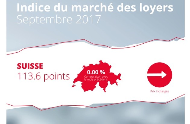 En septembre 2017, les loyers proposés en Suisse sont restés inchangés. L'indice «Suisse» de homegate.ch s'est établi à 113,6 points. Par rapport au même mois de l'année précédente, les loyers proposés en Suisse ont baissé de 0,18 pour cent. Dans les cantons de Vaud et de Genève, ils ont enregistré une hausse de 0,16 pour cent par rapport au mois dernier.