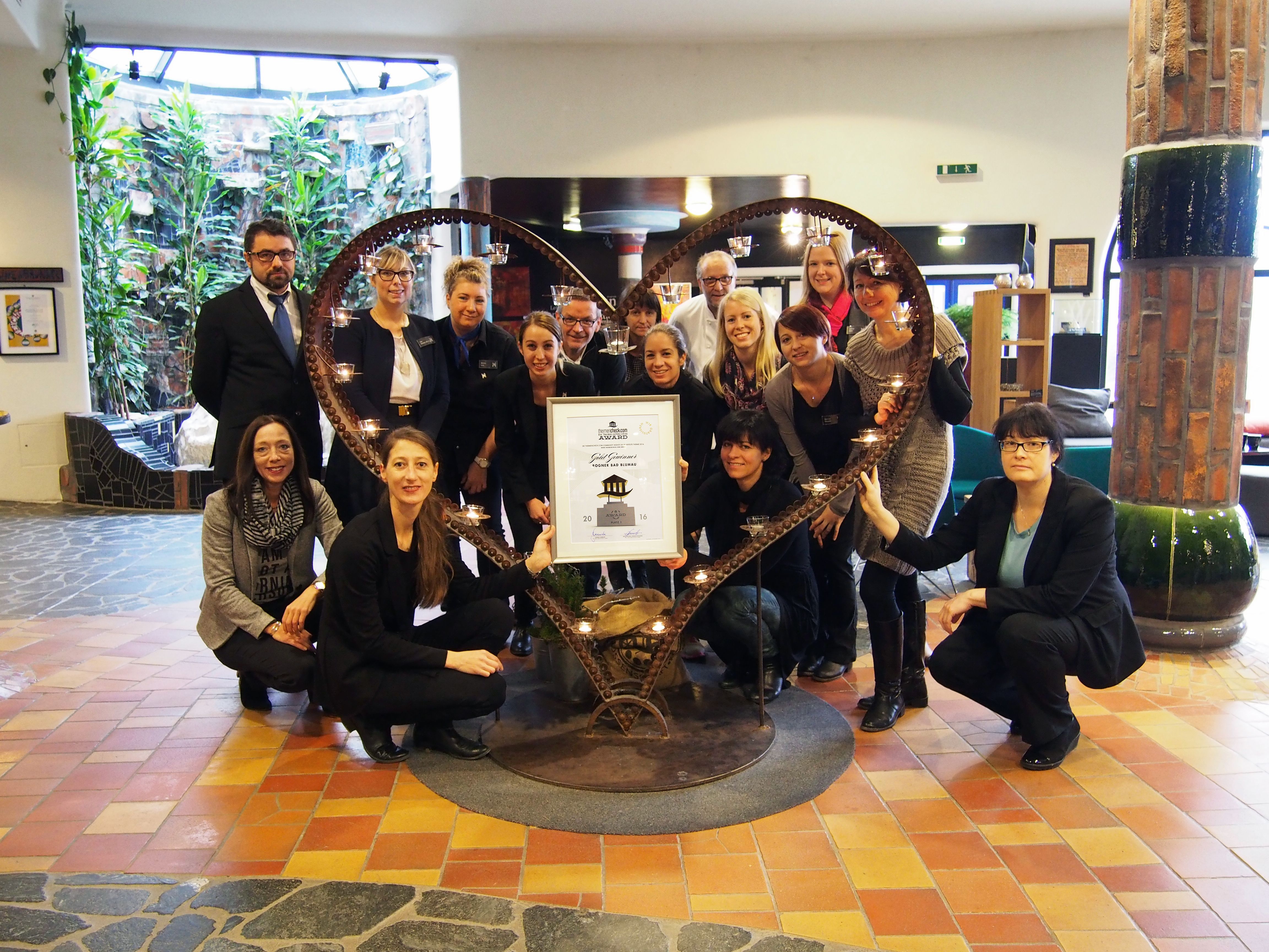 Die digitale Community vom führenden Thermenportal Österreichs www.thermencheck.com wurde mittels Onlineformular zur Abstimmung aufgerufen. Die Abstimmung erfolgte über einen Zeitraum von 12 Monaten. Insgesamt standen 38 österreichische Thermen zur Auswahl. Mit 10.280 der über 70.000 abgegebenen Stimmen katapultiert sich das Rogner Bad Blumau an die Spitze und gewinnt mit einem Vorsprung von über 2.500 Stimmen ganz klar vor einer Therme aus dem Burgenland und einer weiteren steirischen Therme. Das von Friedenreich Hundertwasser gestaltete Gesamtkunstwerk wurde bereits zum zweiten Mal zur beliebtesten Therme des Jahres gewählt und war in allen 4 Jahren unter den Top 3 vertreten: