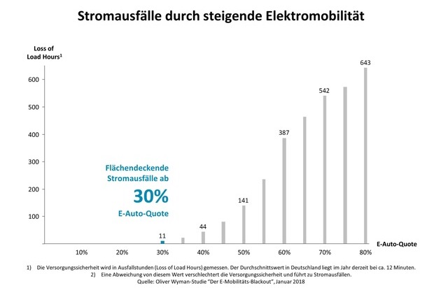 Ab einer E-Auto-Quote von 30 Prozent kommt es in Deutschland zu Engpässen bei der Stromversorgung. Unter den derzeitigen regulatorischen Rahmenbedingungen könnte in deutschen E-Mobilitäts-"Hotspots" bereits in fünf bis zehn Jahren regelmäßig der Strom ausfallen - ab 2032 ist damit flächendeckend in Deutschland zu rechnen. Auf diese Weise bedroht die wachsende Anzahl elektrisch angetriebener Autos die Stabilität der Stromversorgung und setzt die Netzbetreiber unter erheblichen Handlungsdruck. Die Oliver Wyman-Analyse "Der E-Mobilitäts-Blackout" zeigt eine Alternative zum konventionellen Netzausbau auf: die Flexibilisierung der Ladevorgänge. Hierfür gilt es, kurzfristig Rahmenbedingungen zu schaffen.