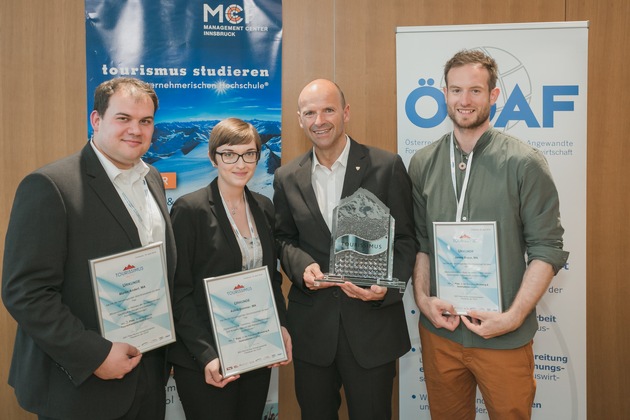 Grund zum Feiern gibt es am Management Center Innsbruck®: Der Gastgeber der diesjährigen Abschlussveranstaltung des Österreichischen Tourismus-Forschungspreises "Tourissimus" gewann nach 2017 auch 2018 den begehrten Preis vor der Wirtschaftsuniversität Wien und der Fachhochschule Salzburg. Grundlage für die hochkarätige Auszeichnung sind die durchgängig hervorragend bewerteten Einreichungen der MCI-Tourismus-Masterabsolventen/innen Astrid Sommer, Martin Anderl und Jannis Braun.